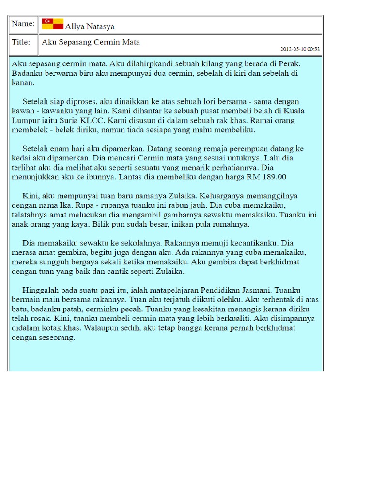 Karangan Autobiografi Aku Sepasang Cermin Mata Pdf